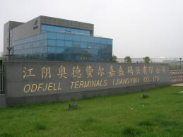 江阴奥德费尔嘉盛化工仓储有限公司系由挪威奥德菲尔公司和嘉盛集团合资兴办的企业。奥德菲尔是世界知名的化学品物流公司,公司拥有自己的专用化学品船队及遍布世界各地的化学品仓储物流设施,也是进出中国的重要化学品船运公司之一。合资公司采用符合国际先进物流理念、适用先进的技术装备和科学的经营管理方法来进行公司的营运。本项目为化工仓储物流工程,一期工程储罐总储量99,800m3,年周转量100万m3,库区选址在江阴石庄工业开发区内长江边,配套有5万吨级的专用码头,占地面积为66,785平方米,总建筑面积4,180 m2。总投资12,825.57万元人民币。我公司承担了该工程的初步设计和详细设计工作,涉及工艺系统、管道、非标设备和压力容器、自控仪表、电气、总图运输、建筑结构、动力、给排水和消防、暖通、概算和技术经济等专业,其中,库区储罐采用API-650标准,单坡斜底储罐形式设计建造。此项目于2007年10月建成投入运营。